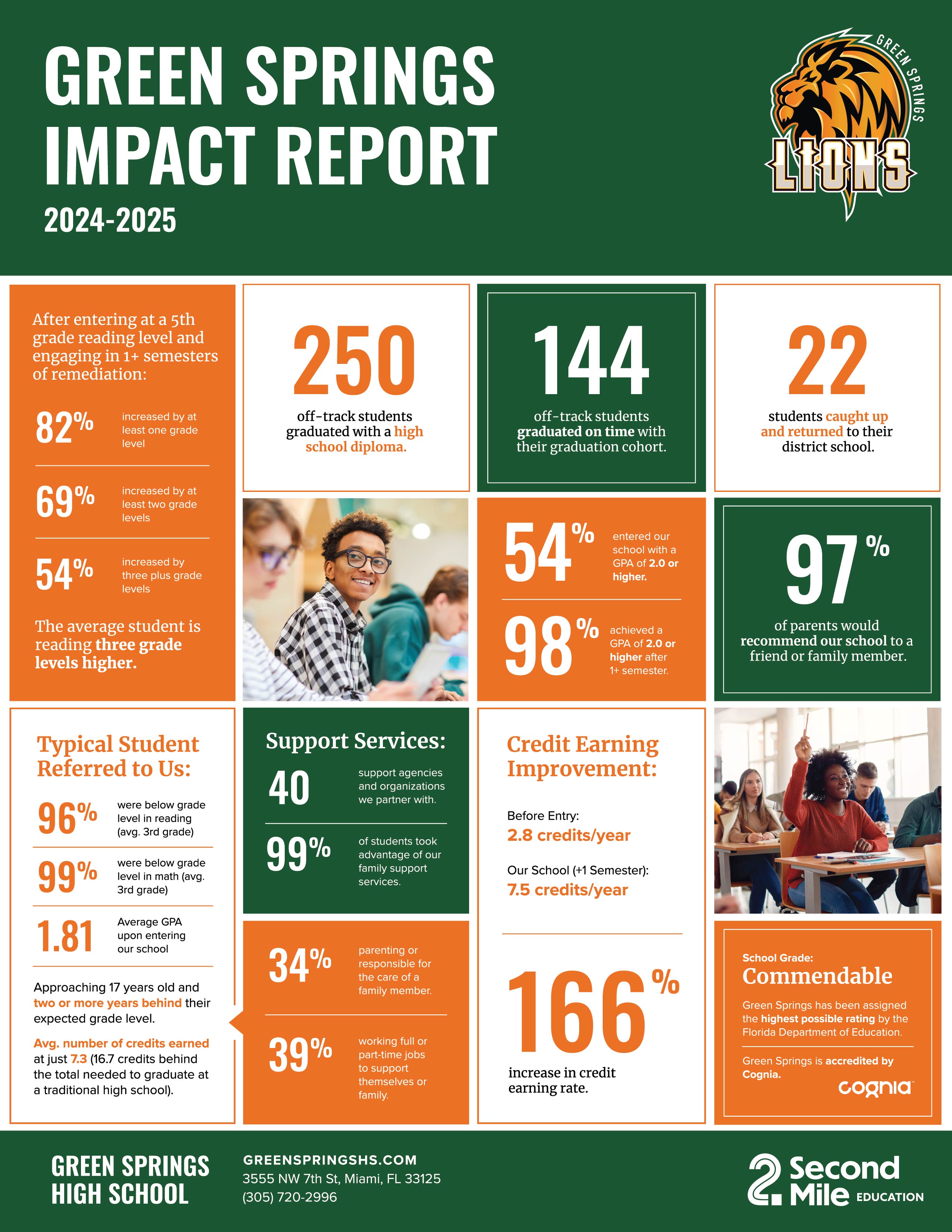 See our historical SIR ratings history below. Read more about Florida School Accountability at the Florida Department of Education Website. Accountability Data and link: GREEN SPRINGS HIGH SCHOOL REPORT CARD Student Success: We invite you to listen to our Student Success Stories directly from the source - our students themselves! Each of these students individual success helps make up some pretty remarkable results.